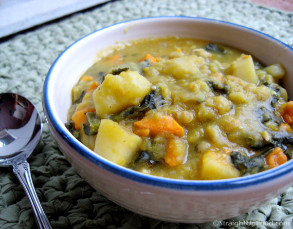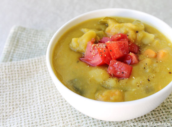Cathy, this soup is delicious. I substituted 1/4 cup of barley for the split peas as a suggested variation. Thanks for all of your great recipes. Can't wait for your cookbook!