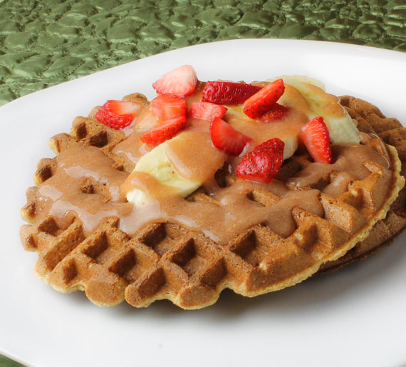 - Sliced fruit, such as bananas, strawberries, and/or blueberries, to top waffles (optional)