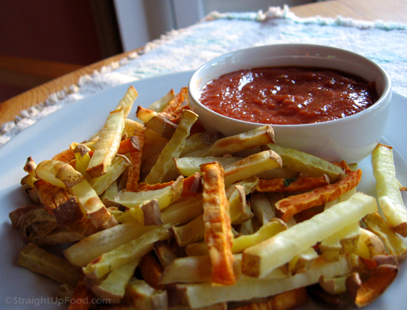 Can't believe these fries were so delicious made without oil or salt! The ketchup was so wonderful and easy --- I even used it on the sweet potato fries - YUM! Who needs