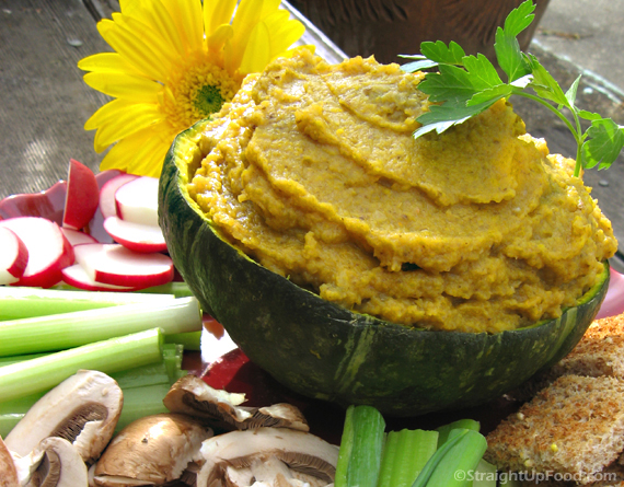 Kabocha squash, which resembles a small green pumpkin, is known for its sweet flavor, even sweeter than butternut squash. It provides the foundation for this earthy vegetable dip that also doubles as a sandwich spread. Kabochas are at their peak in fall, but they can usually be found year-round in grocery stores.