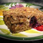 My friend and fellow cooking instructor, Katie Mae, came up with these delicious Banana-Blueberry Bars. They are moist and hearty, and contain no salt, oil or refined sugar. They make an ideal breakfast, traveling, or dessert snack.