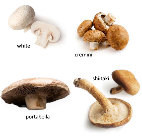 Above: White and cremini are the most commonly used mushrooms in the U.S. followed by the portabella and shiitake.