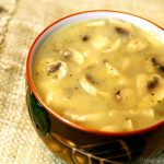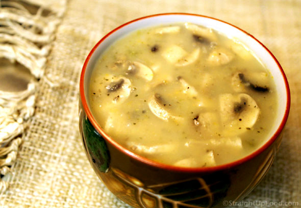 If you have fond memories of canned mushroom soup, you will enjoy this version. The canned soup's appeal is mainly due to its very high salt content. This recipe leaves out the salt but not the flavor.