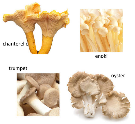 Above: These mushrooms are a little more exotic but stil popular. They are sold in most markets, and are typically more expensive than the above commonly used mushrooms.