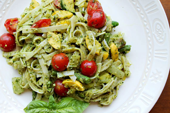 Ah, lovely pesto! But donβt you need olive oil and cheese to make pesto? No way! These ingredients are traditional, but they can simply be omitted, resulting in sauce that is lighter and fresher tasting, but still has plenty of that famous basil and garlic punch!