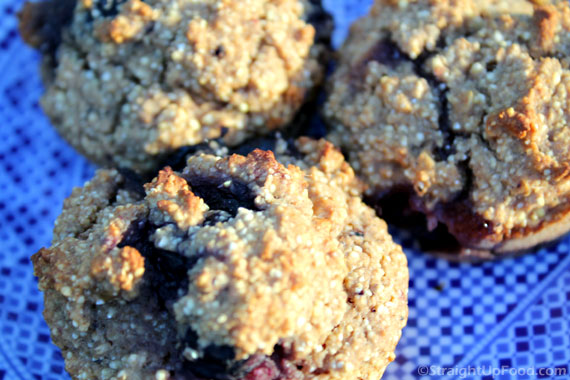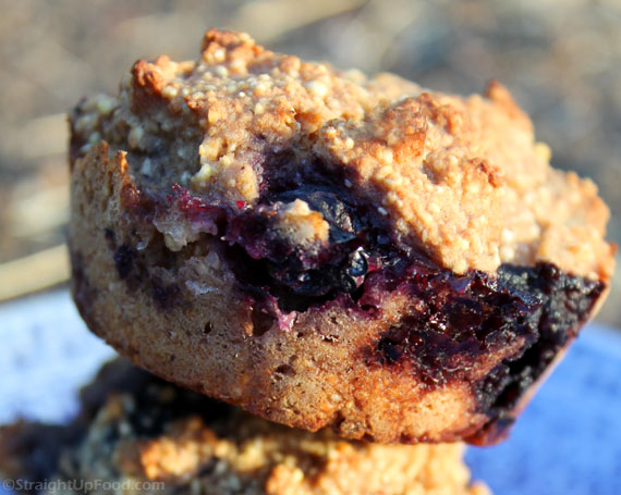 These muffins turned out even better than I had hoped! I made the recipe with a mixture of different frozen berries instead of blueberries, but it was still fabulous.