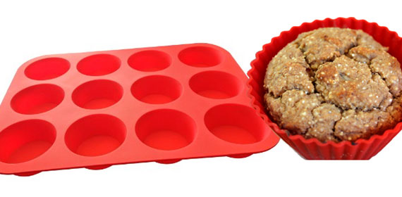 Above: Silicone bakeware is made from food-grade silicone plastic to withstand the heat of the oven and does not harm food. A silicone muffin pan is especially convenient since oil should be avoided (to grease the muffin cups). To remove the muffins, simply press up from the bottom of the pan to pop each muffin out. They also make single-serve silicone muffin cups (right), as well as silicone muffin papers.