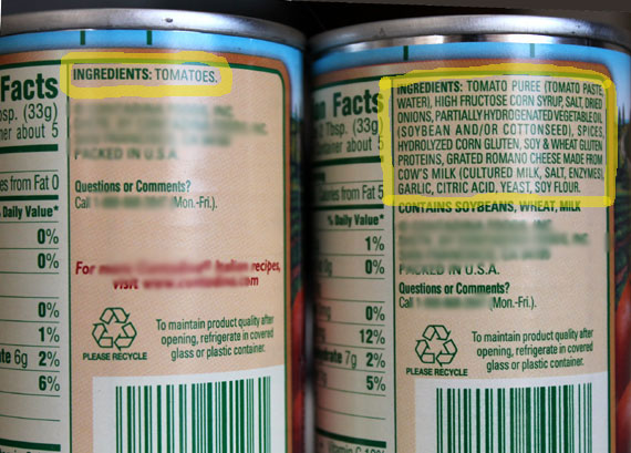 This is another example of how anything, even the simple tomato, can be turned into a junk food. Any food with a label deserves our attention. Why? Because the body is always paying attention to what’s going into it, even if we're not. Keep the following tips in mind next time you go shopping: