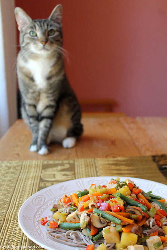 Yum! I love pineapple in stir fry dishes 🙂 Rosie is an adorable cat by the way!! (My cats love jumping the table and checking out my food too...haha).