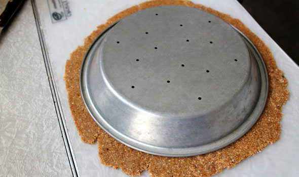 Above: The crust should now be laying on top of the pie pan.