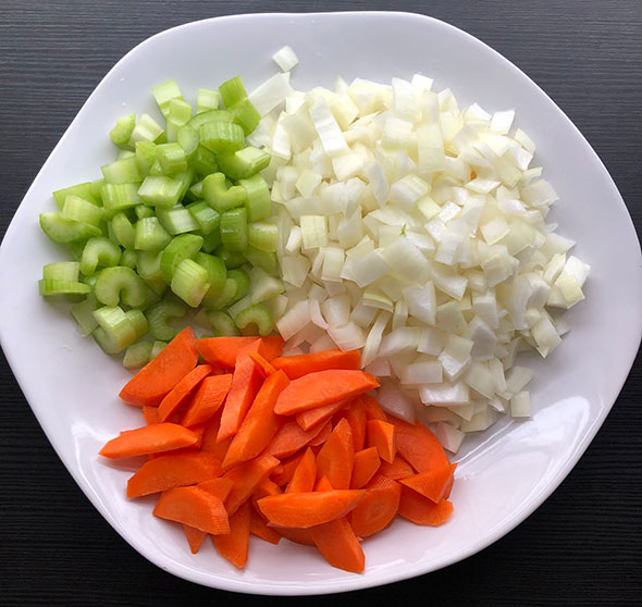 Above: The onion, celery, and carrot prepared for step 1!